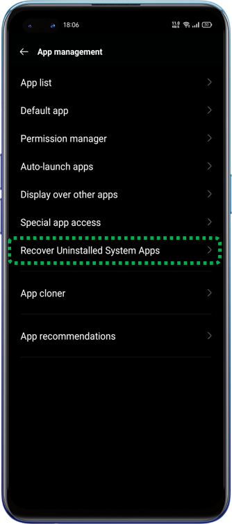 Now you will see the option Recover Uninstalled System Apps.
