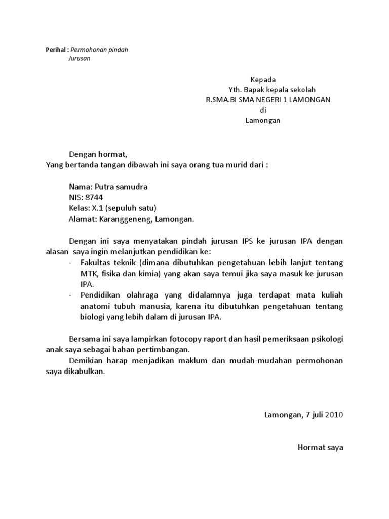 Bisa ga sih siswa kelas 10 SMK pindah sekolah ke SMK yang lain dengan jurusan yang berbeda pula. Akan teteapi ini tergantung sekolah mu. Contoh Surat Keterangan Pindah Sekolah Berminat Pindah Jurusan SMA.